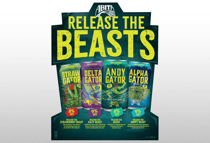 Craft a show-stopping Point of Purchase display worthy of Abita’s bold brews. The designer set the vision, and we delivered—producing premium retail Pole Toppers built to ship nationwide. The mission? Launch the fierce “Release the Beasts” Gator line with unmatched impact. Quality, scale, and style—executed flawlessly.